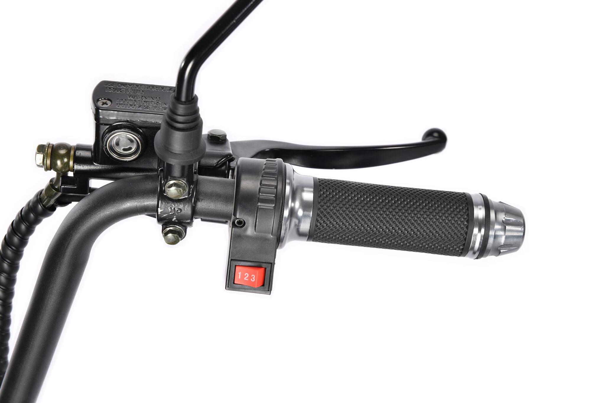 Стоит обратить внимание на ручки газа, которые сделаны из алюминия с каучуковой прослойкой. Ручки тормоза имеют возможность настройки фиксации в удобном для ваших пальцев положении. Кнопки переключения скоростей и света выполнены в классическом стиле.Пробег