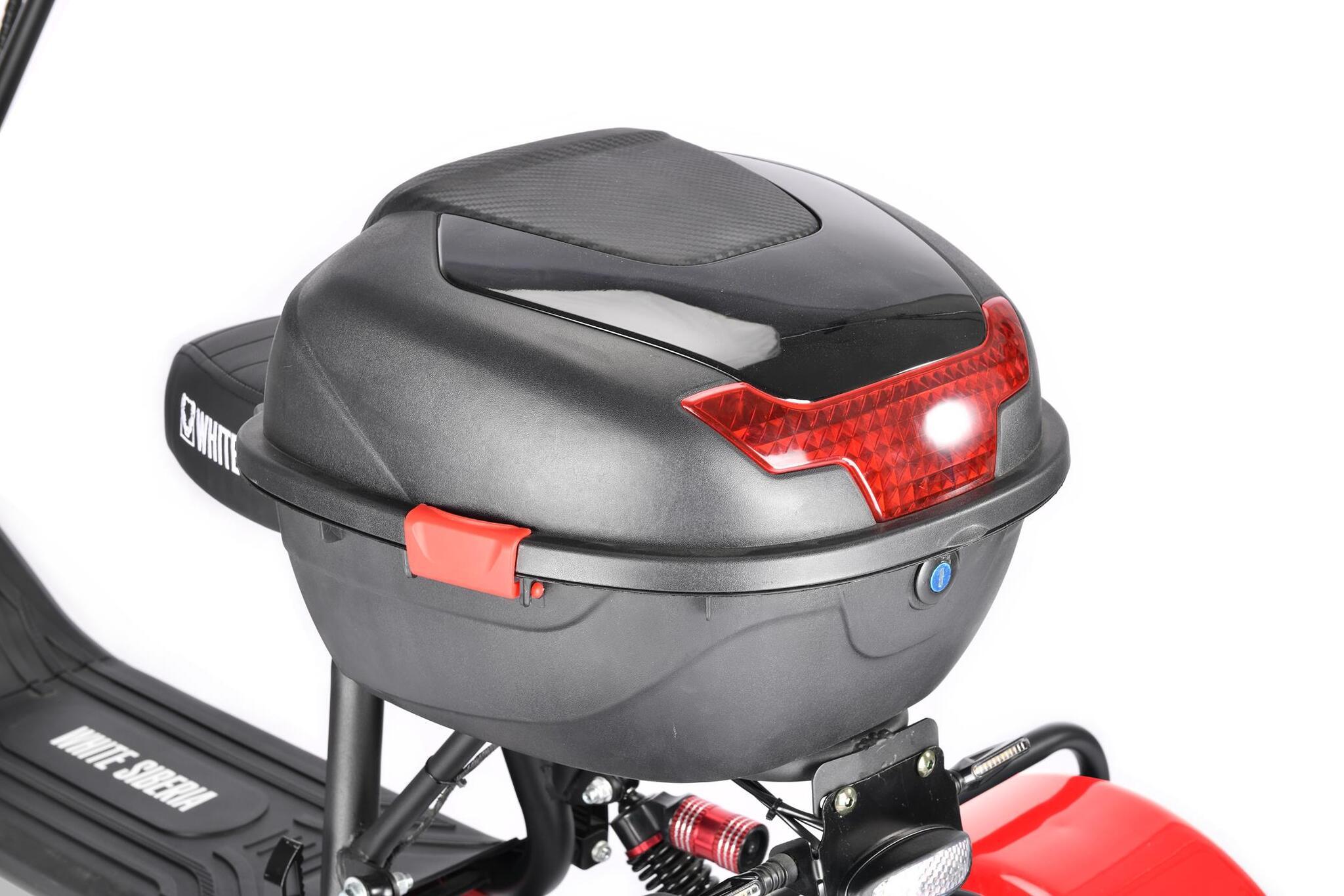 Классическое сиденье, единое для всей линейки моделей WS. Оно мягкое, широкое, удобное и прекрасно подходит для длительных поездок. Верх сиденья отделан прочной и долговечной эко-кожей, которая устойчива к воздействию влаги и ультрафиолета.Бокс