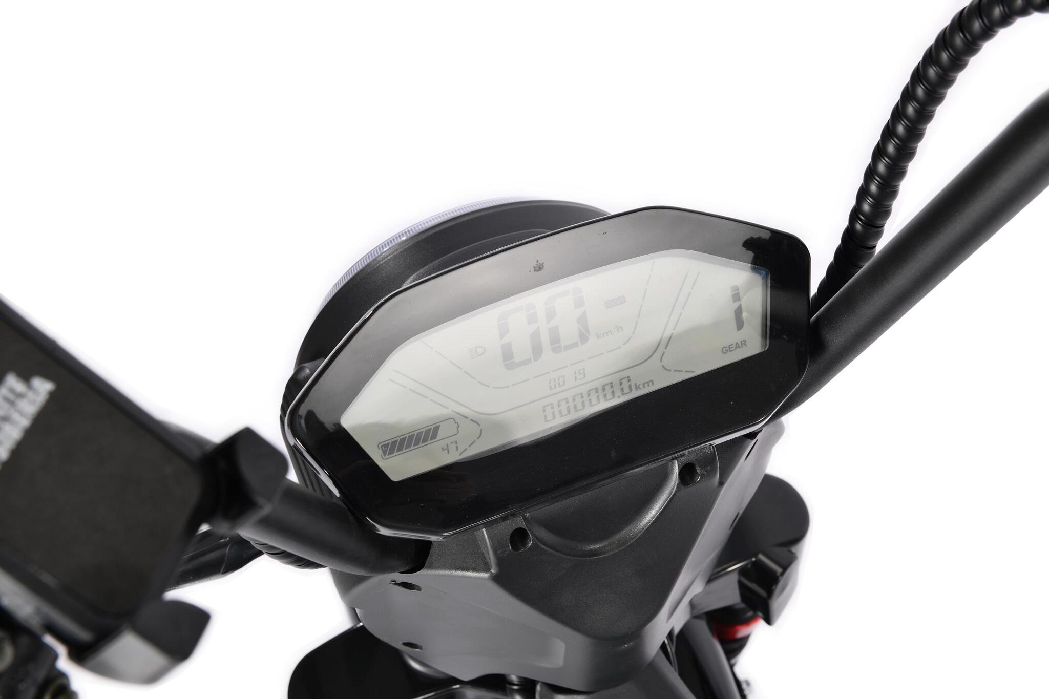 На модели установлен большой LED-дисплей, отображающий скорость, заряд батареи, индикатор света и пройденную дистанцию.