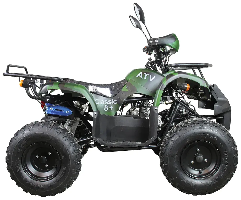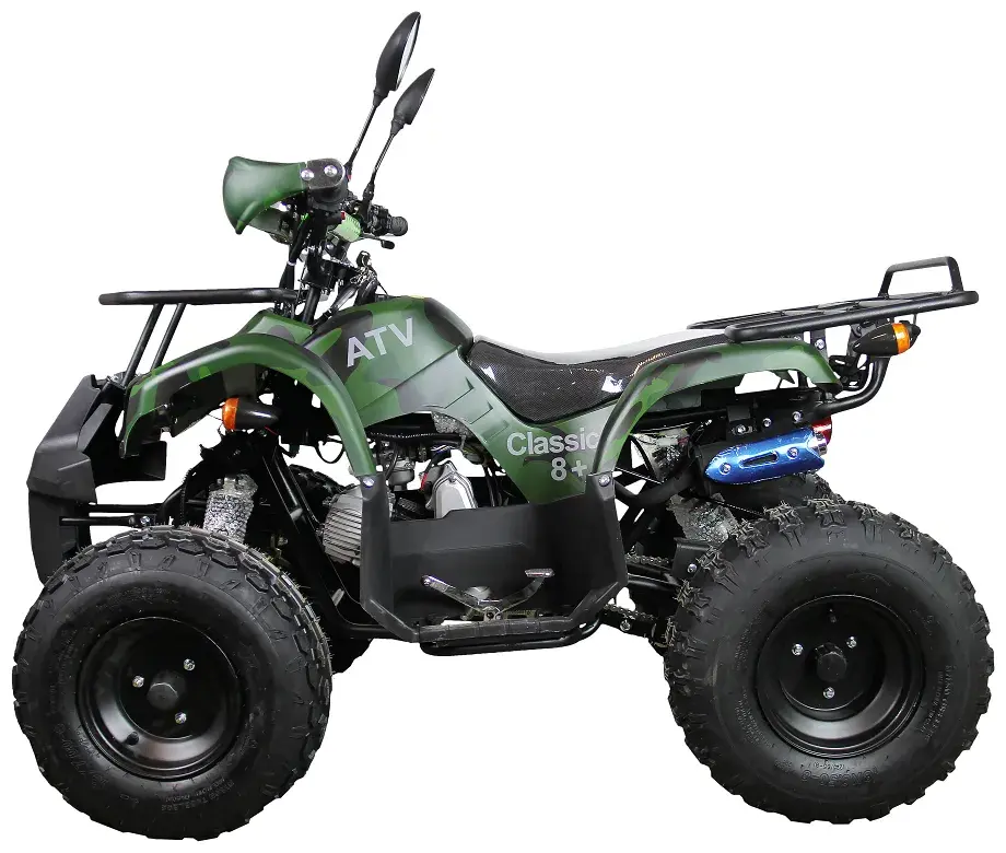 Квадроцикл ATV Classic 8+ 125 кубов был создан с акцентом на доступность для покупателей, которые ценят простоту и производительность без серьезной наценки за бренд. Малогабаритный вездеход одинаково хорошо подходит как для неопытных наездников, так и для водителей, которым не нужна мощная машина, но они хотят наслаждаться уверенной и легкой ездой. Прокатиться по укатанным дорожкам, доехать до ближайшего намеченного пункта или отправиться в кемпинг с друзьями – это то, что может дать вам бюджетный квадроцикл ATV Classic 8+ 125 куб.см.