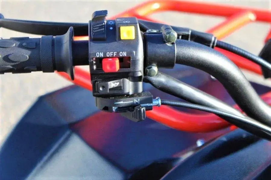 Независимая передняя подвеска позволяет легко маневрировать и держать уверенно курс. В наличие задний ход. На квадроцикле установлены большие внедорожные шины размером 23 дюйма передние и 22 дюйма задние. На задней оси установлены дополнительные защитные кожухи.