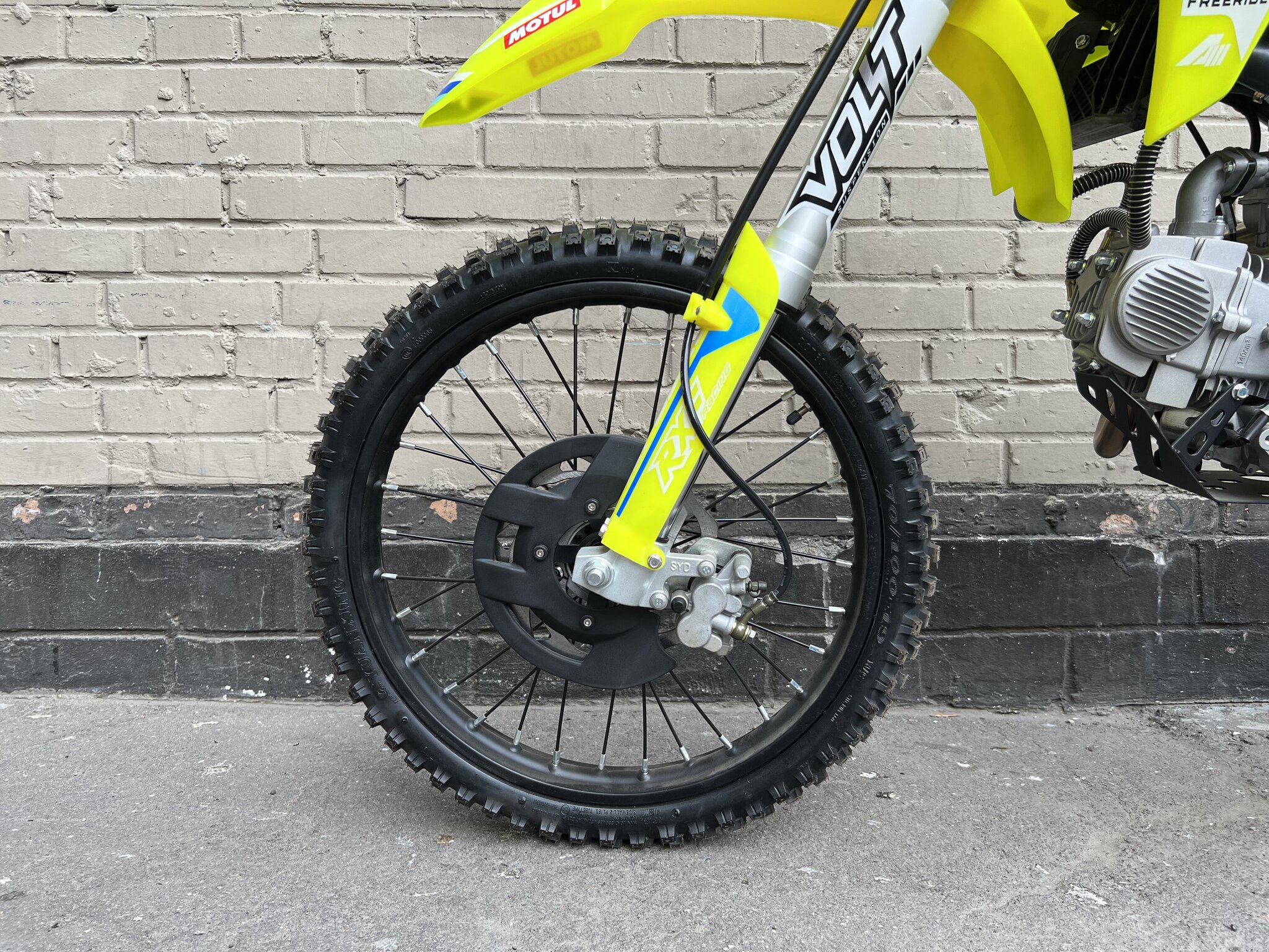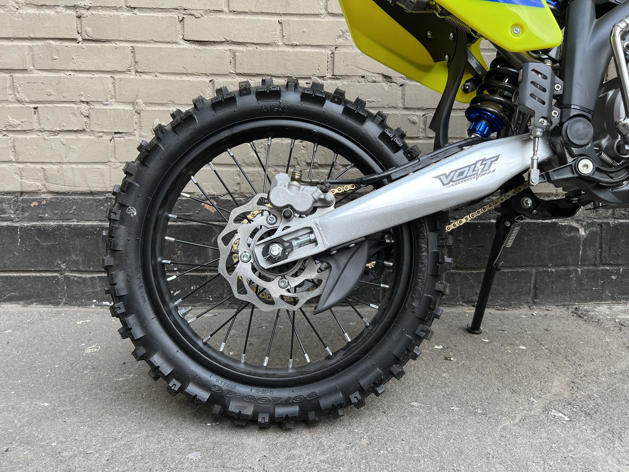 Маятник: СтальнойРуль: FATBAR 28/22 мм, стальнойГрипсы: VOLT Racing чёрныеТраверсы: Кованый алюминийТормоза дисковые [пер./зад.]: 220/190ммЦепь: KMC428Выхлопная труба: СтальнаяГлушитель: VOLT 5.0 алюминий